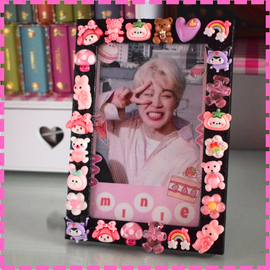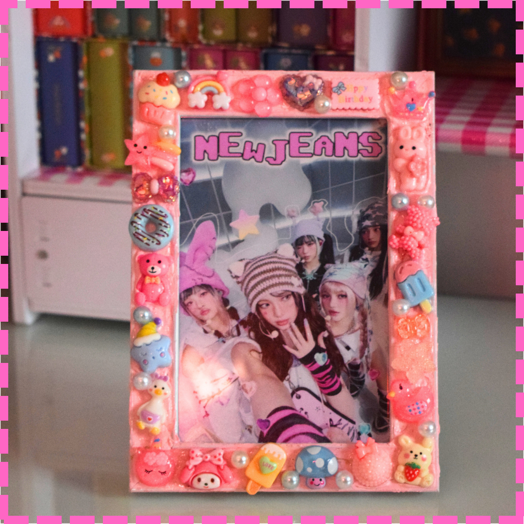 Marco de fotos de decoden falso , crema falsa y figuras de resina Tema de New Jeans 4x6.